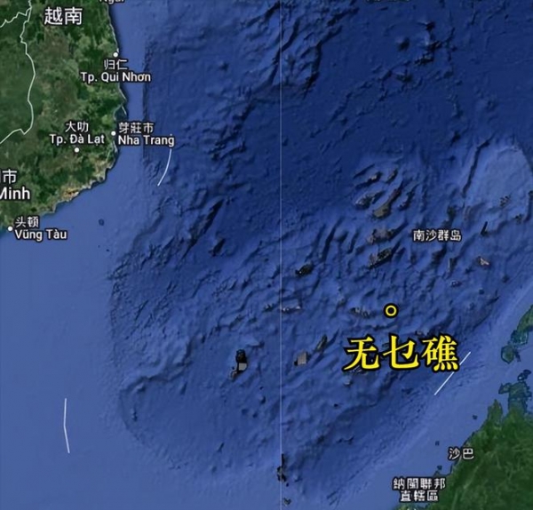 无乜礁离越南海岸线的距离超过700公里,在越南非法乳猪南沙岛礁的最东边,从卫星图可直观感受越南人的手伸得有多长!