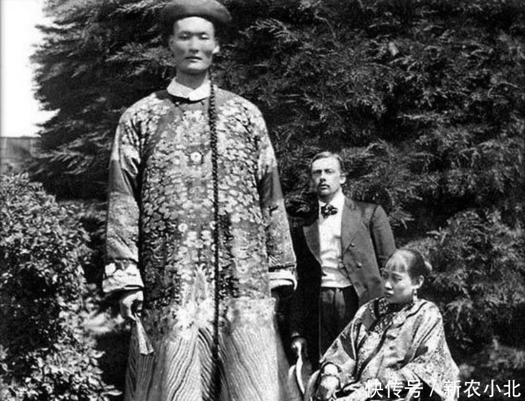 清末老照片,这是清末的一位巨人,身高都超过今天的姚明了!坐着的就是他的妻子,后来妻子病逝,他又找了一位洋人女子为妻,还加入了英国国籍!
