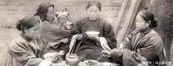 在晚清时期,因为列强们侵略,朝廷签订了许多丧权辱国的条约。就算是乡下的地主们的生活也不是那么的快活!(图为这一个地主家庭,吃饱饭看起来没有问题,不过一桌子人也就两个菜。)