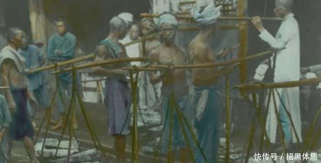 清末旧照,这是一张上了色的照片,照片拍摄于清末民初时期,盐厂派盐时称重的场景。