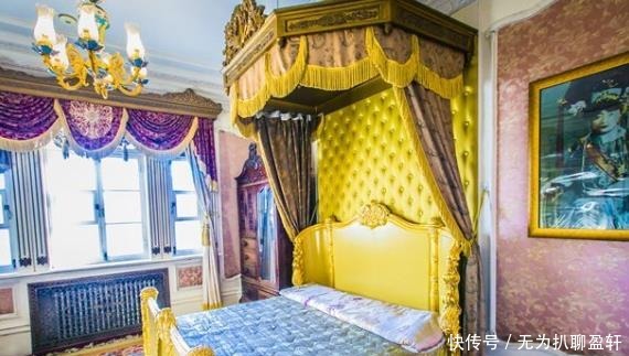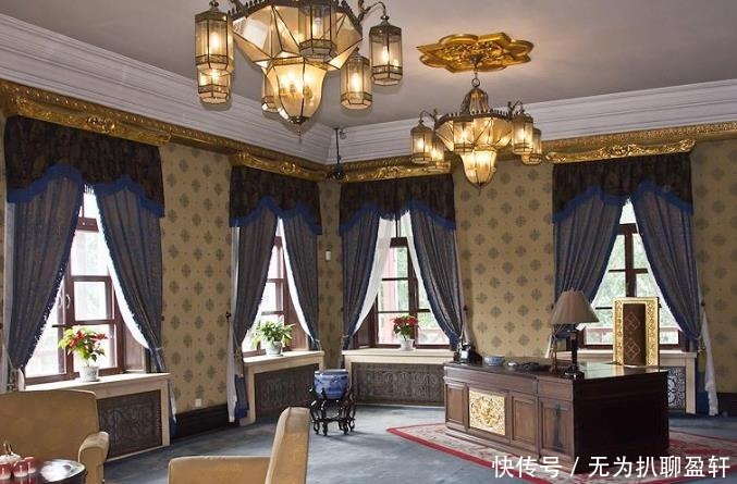 溥仪一生结过五次婚,却没有生下一儿半女,最主要的原因是因为他跟妻子们都是分开睡的。图中所看的这间房间是皇后婉容的卧室,卧室内的装饰但是非常的奢华,不仅有雍容华贵的墙壁,还有欧洲风情的卧榻,墙上还挂着皇后的照片,看上去也是风情万种。