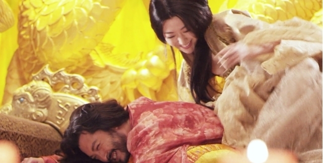 图片:隋炀帝杨广趴在床边与妃子嬉戏剧照