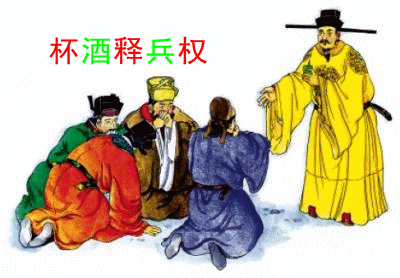 宋太祖又说:"人谁不想富贵?一旦有部下以黄袍披在身上,就算原先没有打算,可以拒绝得了吗?人生短暂,不如多积金钱,购买田宅留给子孙;歌舞快活,颐享天年。我们君臣之间不必互相猜忌、这不是很好吗?"第二天所有武将就称病请辞,而太祖也一一照准。