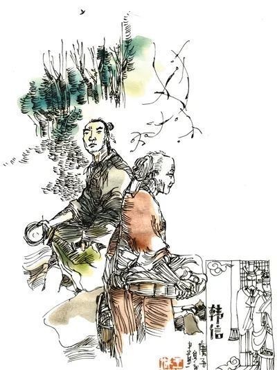 韩信,秦末淮阴(今江苏省清江西南)人,中国古代著名的军事家,汉兴三杰之一。他先属项羽,后归刘邦,被任为大将,韩信以智谋为刘邦攻占了关中。楚、汉两军在荥阳、成皋间相持时,他率军抄袭项羽的后路,破赵取齐,因此被刘邦封为齐王。不久,韩信与刘邦会合,灭项羽于垓下。汉朝建立之后,改封楚王。