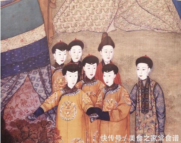 清人画弘历塞宴四室图中的容妃(后排右一)故宫博物院藏