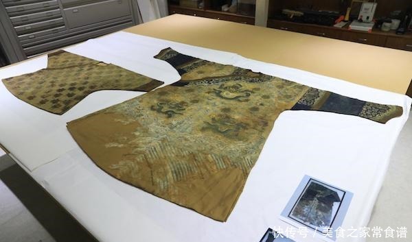 "这件龙袍到我们手里之后,先把镜框拿掉,再揭展。因为它长期压在镜框里织物会粘连,而它的织物纤维也已经变得很脆,所以要非常缓慢得进行。把它打开之后,很多地方都变形了,就要去整形,我们叫平整,把它调整到比较正常的状态之后再做背衬、加固。"王淑娟说,这其中还包括相近修复材料的寻找、定做和染色等。