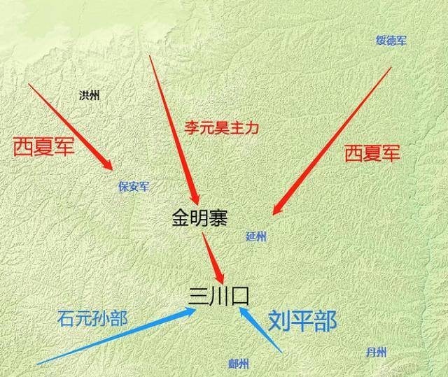 西夏军队在三川口歼灭刘平的部队后,重整阵型兵临延州准备攻城。