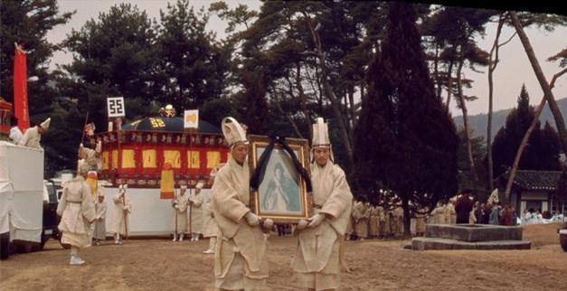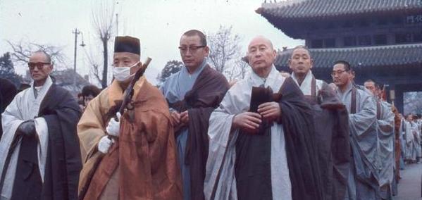 李氏五百年统治韩国,信奉佛教,所以葬礼也是佛教方式。图为1966年纯贞皇后尹氏葬礼上的韩国僧侣。