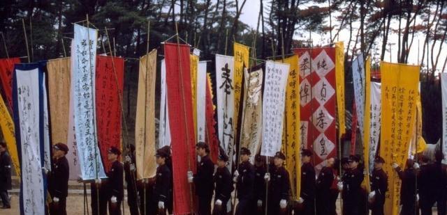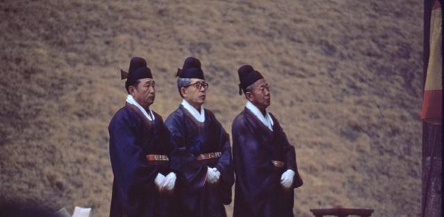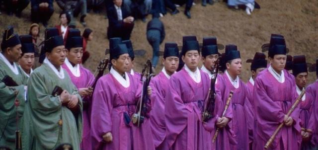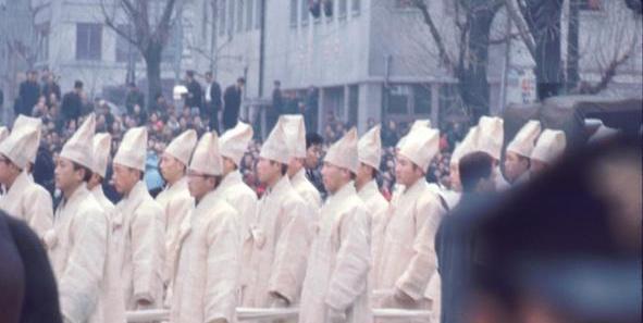 1966年纯贞皇后葬礼上的乐工,这些礼仪都是大韩帝国时代的遗制,也因为大韩帝国以大明为典范,制度上有明的遗存,这个画面也有明朝的影子。
