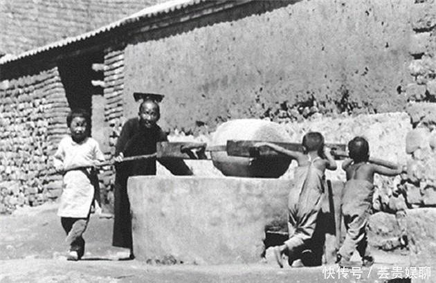 正在使劲拉磨的祖孙四人。这是一张让人泪目的照片。照片中,苍老的奶奶和三个稚嫩的孩子在推磨,让人忍不住有流泪的冲动。社会最底层的艰辛,是很多人难以想象得到的。谁也不知道,这三个如此年幼的小孩和这位如此苍老的奶奶,究竟承担了多少本不该在他们年纪承担的生活的苦。看到这,不知各位有何感想?欢迎留言讨论。
