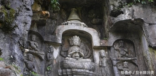 杨琏真珈在杭州灵隐寺旁的飞来峰雕凿佛像,雕了自己的一座像在多闻天王像的左下方,明代多个人曾说斩去了他的像头,可是都搞错了,他的像今天依然还在飞来峰。