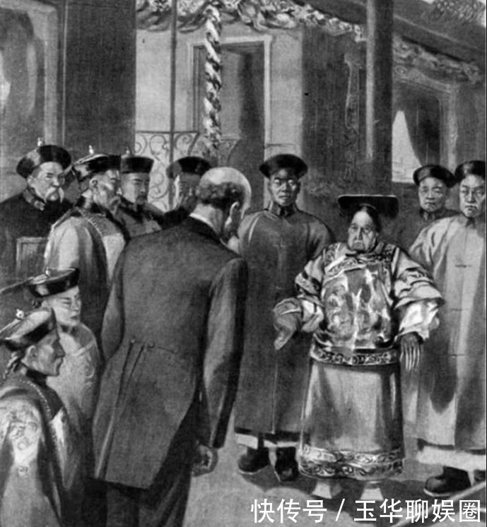 画报里的外国领事人员觐见慈禧太后。 图1慈禧太后丑陋无比!