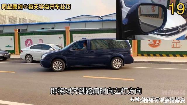 当前门把手最远端即将对齐到路肩时向左打方向,这个看点的结果是车身靠外了。