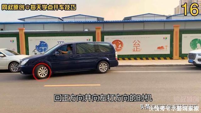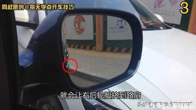 补救措施是向右打方向,让前门把手覆盖住一点路肩后再向左打方向顺直车身,