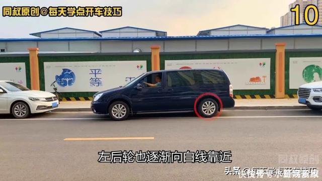 从这个侧方位停车过程中,我们需要重点把握的是: 第一,如何把握在向右打满方向倒车时,回正方向并向左打方向的时机;