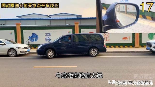 第二,如何发现在向左打满方向时,车身距离路肩太远,怎样调整方向才能在倒车过程中进行有效纠正。