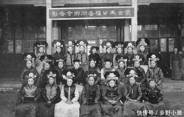 【蒙古王公福晋同乡会合影】外藩蒙古王公是清朝外藩蒙古的王公。分为:亲王、郡王、贝勒、贝子、镇国公、辅国公六等爵位;同时,设置有四等爵位台吉、塔布囊(喀喇沁三旗、土默特左翼旗)。
