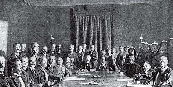 图为义和团运动失败后,清政府被迫和八国联军签订《辛丑条约》签约仪式。