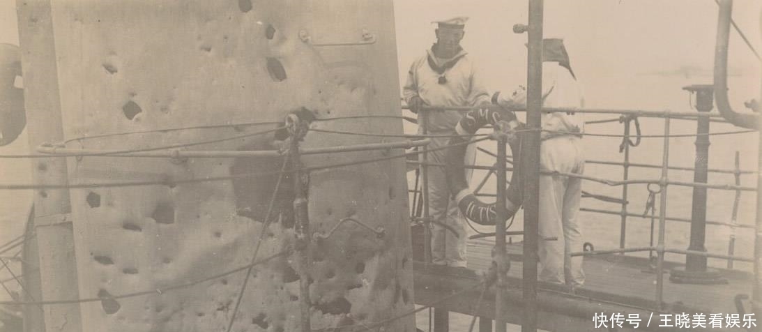 战斗打响后,罗荣光奋起抵抗,打伤打废敌舰多艘。这一张照片拍摄于德军"伊尔提斯"号炮舰,当时这艘军舰在交战后不久便被清军炮火击中。