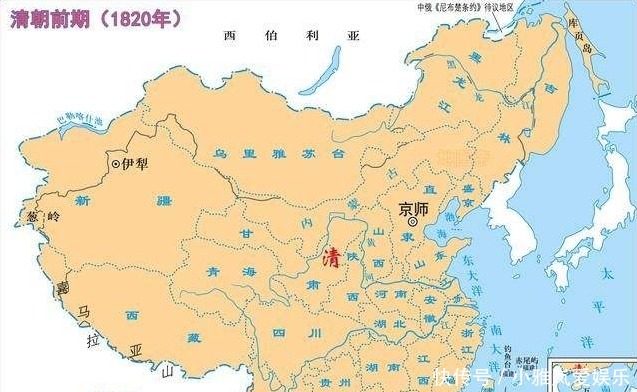 而清朝版图的就比较具体了,在乾隆彻底平定西北以后版图达到鼎盛:东北与沙俄以外兴安岭为界(含库页岛);正北与沙俄分界萨彦岭分界,在贝加尔湖以南;西北边界在巴尔喀什湖至帕米尔高原;东与与朝鲜王朝沿图们江、鸭绿江分界;南部边境不包含早就独立的越南,只是维系了宗藩体系的存在。