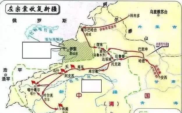 公元1865年,在沙俄的支持下,阿古柏,占据新疆,自立国号为哲德沙尔汗国,以自立为名行分裂之实,同时沙俄在1871年直接占领伊犁,为阿古柏撑腰。不止是沙俄,就连英国也来支持力挺,就在不久前,英国和沙俄签订协议,将自汉朝以来就属于中国的帕米尔高原(古代称葱岭,也就是不周山)划分,只留了很少的一部分给中国。而当时的清朝,同样面对1874年武装进犯台湾的日本。当时的清廷同时面对来自西北和东南的压力,可以说压力巨大,腹背受敌,由此清廷产生了"海防"和"塞防"的争论,也就是面对这样的局面,应该如何处理,确保一方。