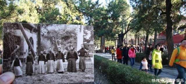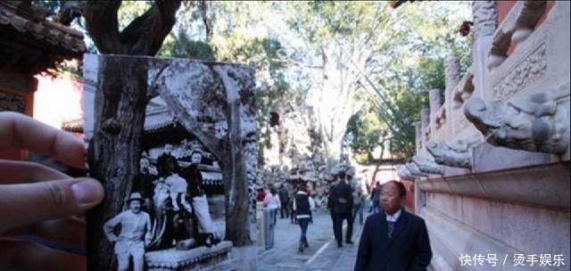 手持照片为1924年,溥仪、润良、毓崇、溥杰、润麒等人在御花园!