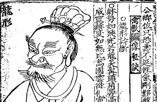 明《新刊京本风鉴相法人相编》云:"夫龙形者,其人鼻高耳耸,形貌端严,身体长大,骨格清秀,眉目分明,举措出众,有威权,足机变。昔汉高帝龙(隆)准龙颜,唐太宗龙姿而日角,乃帝王之相,非常人也。"《鍥王氏秘传知人风鉴源理相法全书》"龙形诗断"曰:"体势如飞宛若龙,美髯头角鼻高隆。威灵赫变(奕)如无比,万国云从仰帝聪。"诗旁还配有一幅"龙形"人相图示,"异像"之面廓眉眼乃至髭须都与该图一一吻合。
