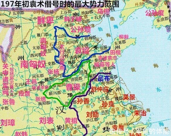 或许正是自己的出身,和强盛的势力,加上汉室衰微,让袁术有了自己当老大的想法。建安二年(197年),袁术在寿春称帝。袁术称帝的时候势力范围西至汝南,北至沛国,东至广陵,南至会稽。大约有八个郡左右的领土,约有一个半州,可媲美后来的蜀国。袁术称帝之前,当时占据徐州的吕布和袁术眉来眼去,孙策渡过江东四面出击。袁术称帝后,吕布、孙策和袁术决裂,天下群起而攻之,可谓众叛亲离。