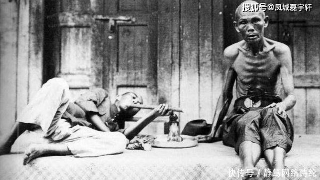 鸦片到了晚清末年,已经有上百万人吸食。图中烟馆里的贫民,抽的已经肋骨可见。被外国人称为"东亚病夫",看来真不是吹得。