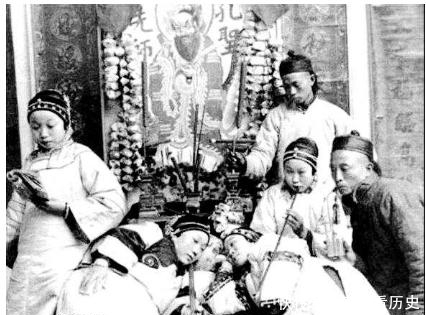 这是一对夫妻在抽大烟的晚清老照片,那位抽大烟的女子应该是个清朝后裔女子,从她的装束看地位还不低,曾经估计也是品阶较高官员的闺女,可惜被这害人的东西给迷住了。