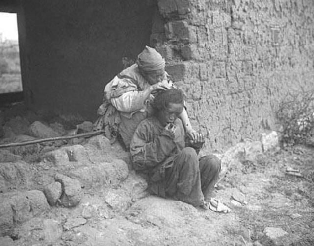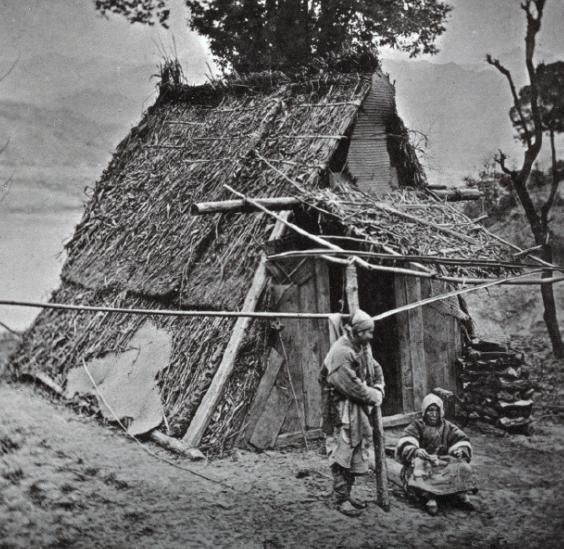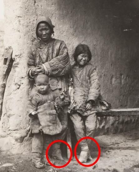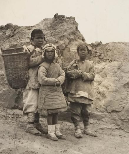 这是一家三口站在自家土房前的照片,妇女和自己的女儿还有缠足的习惯,面对洋人摄影师的镜头显得很茫然。很难想象在那样的社会,这些人是怎么活下来的。