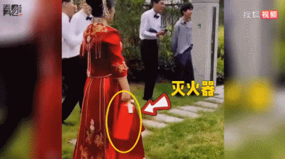 9月28日,山东日照,结婚当天新娘挺着大肚子拎灭火器霸气护夫的视频热传,视频中,新郎兄弟要婚闹,新娘为了保护老公,拎着灭火器出马了。