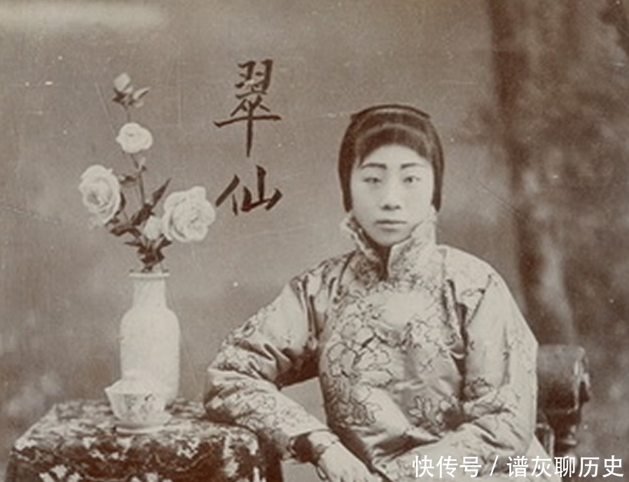 图为晚清末年一名叫翠仙的青楼女子,翠仙的打扮十分时髦。身材消瘦的她穿着改良后的旗袍,端坐在案桌旁的样子十分美丽优雅。再加上其温婉美丽的齐刘海,更显得翠仙的美丽娇俏。晚清末年的女子非常流行齐眉刘海,就算是风尘里的青楼女子亦是不例外。