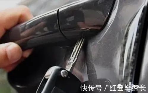 说到这里很多小伙伴可能犯难了,光有机械钥匙也不行啊!关键没有钥匙孔!别着急。我们拔出机械钥匙之后,找到驾驶室车门的拉手,在车门拉手后方的挡板下面找到一个长方形小口。用机械钥匙轻轻插入向上翘起,扣板就取下来了。取下扣板后我们就能看到车门上隐藏的机械钥匙口。