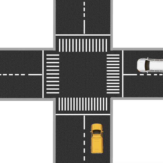 相对于对向行驶的车辆来说,一辆车向右转,另一辆车向左转,两辆车会驶入同一个路口。在这种情况下,右转的车辆应让左转的车先行。