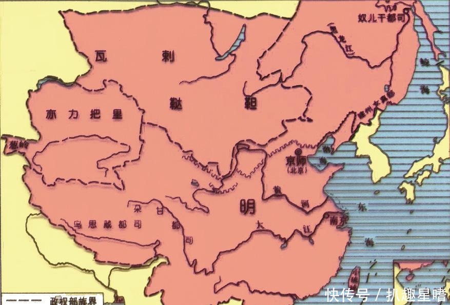 西北方面,明朝疆域控制疆界抵达今新疆东部哈密。