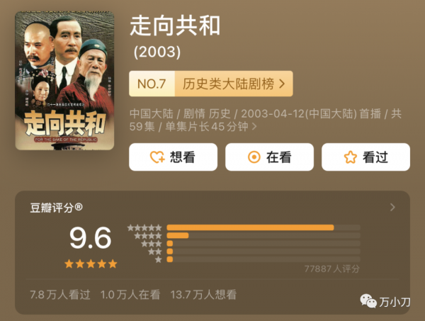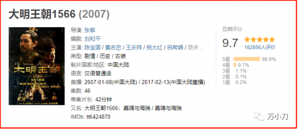 更出人意料的是, 《大明王朝1566》豆瓣评分最终定格在9.7分,比当年的神剧《走向共和》还要高。