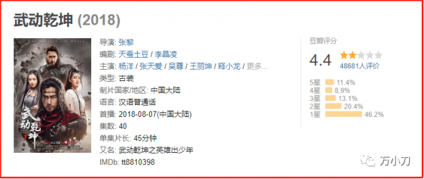 结果,《武动乾坤》上线播出后,口碑一塌糊涂,豆瓣评分只有可怜的4.4分。