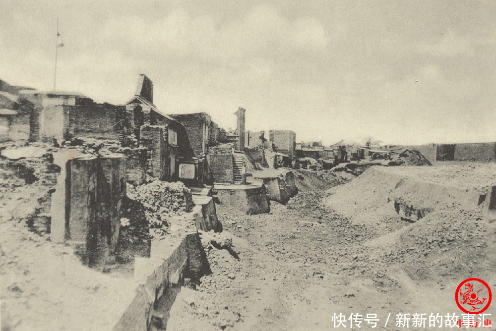 经过清军、义和团与列强军队的混战,京城已经千疮百孔,原本热闹繁华的街区沦为废墟。从照片中看,崇文门大街两边的房屋大片倒塌,满目疮痍。