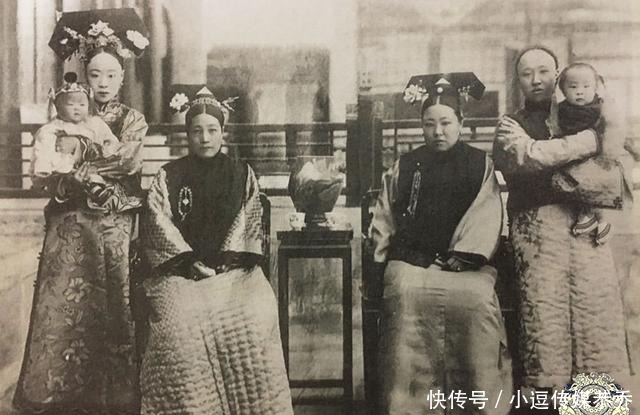 末代皇帝爱新觉罗·溥仪出生于1906年,其父亲是清末醇亲王载沣(光绪皇帝的弟弟),母亲是瓜尔佳氏幼兰。1908年11月14日光绪皇帝驾崩后,年仅三岁的溥仪被带到宫中继承皇位,成为了清朝最后一位皇帝。这张照片就是溥仪的父母与祖母刘佳氏(亲祖母)、李佳氏的合影。照片右侧载沣怀里抱着的是溥仪的弟弟溥杰,左侧瓜尔佳氏怀里抱着的就是溥仪的大妹妹韫媖。