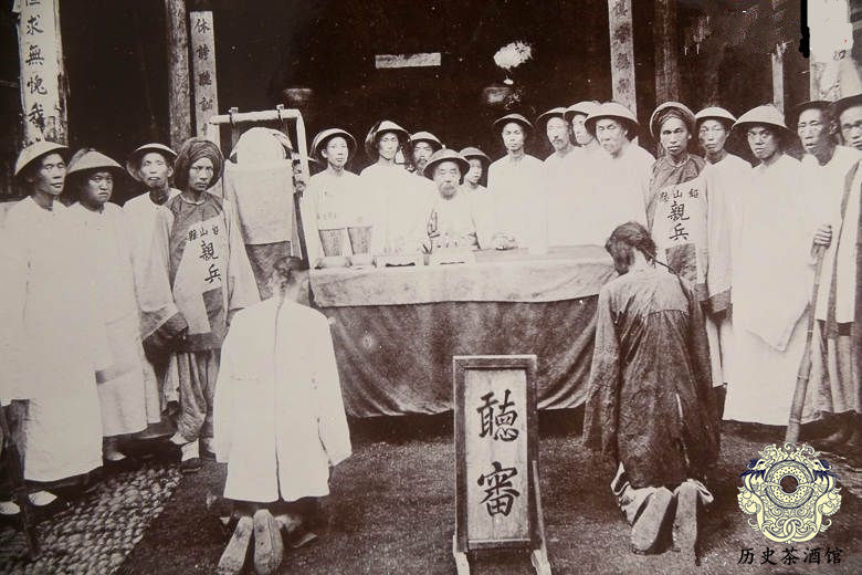 这张照片生动还原了清朝官员审案的真实场景。县太爷端坐在桌前,两名犯人跪在堂下不敢抬头,十分畏惧。和现代社会法院负责审案不同,在古代,县太爷负责审案,手握大权。不仅罪名五花八门,而且刑讯逼供也是家常便饭,因此犯人都十分畏惧。值得一提的是,适度的刑讯逼供在古代并不"违规",不过对于有功名的人是可以不用受这份苦的。