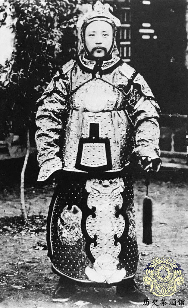 在袁世凯现存的"戎装照"中,多是穿着新式军装,这是袁世凯唯一一张身穿旧式盔甲的照片。这张照片拍摄于袁世凯担任"驻扎朝鲜总理交涉通商事宜大臣"期间。袁世凯虽说是个"官二代",但能力也很拔尖。屡试不第后,他投奔了淮军将领吴长庆,并跟随吴前往朝鲜平乱。由于表现突出,一路升迁,仅23岁就帮办朝鲜军务,26岁就被清廷任命为"驻扎朝鲜总理交涉通商事宜大臣",位同三品。此后他一直驻守朝鲜,铁腕治理,把控着朝鲜的内政外交,虽屡次受到朝中大臣的弹劾,却也有效遏制了日俄的渗透,维护了我国利益。