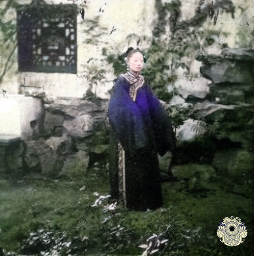 摄影师汤姆逊拍摄的京城中的一位小妾。照片中小妾的丈夫名叫杨昉,是一位富商,后花钱买了个兵部武选司兼武库司郎中的官。汤姆逊之所以能够进入杨昉家中拍摄,主要是因为杨昉思想十分开明,并对西方的先进技术充满兴趣。在他的家中有各种各样的西洋机器,蒸汽机、照相机、发电机等应有尽有,即使是家中的窗户也都使用了当时非常时髦的玻璃材质。汤姆逊在介绍中提到,杨昉的这位小妾刚过门不久,但却很忧伤,这或许与杨昉妻妾众多有关。