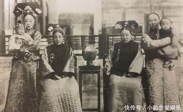 这张照片上站着的男子则是清朝末期的摄政王醇亲王载沣,他手中所抱的孩子是他的第二子溥杰,坐着的两位夫人则分别是载沣的生母刘佳氏和庶母李佳氏,最左边站着的女子,则是载沣的嫡福晋瓜尔佳氏,她怀里抱着的是二人的长女韫媖格格。