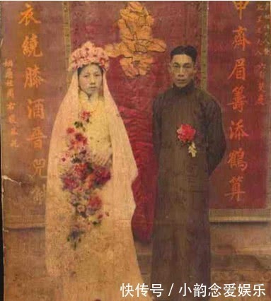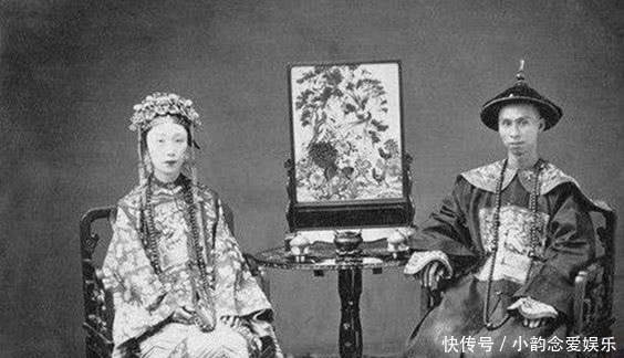 图三是清朝的大臣成亲当日所拍的照片,只见新娘身上的喜服还是很好看的,头上的饰品也很雍容华贵,这种古典风还是十分美丽的,而新郎所穿的则是朝服。