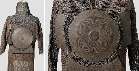 到了明朝时期,兵书中终于出现了锁子甲的记录,武备志中记载有一种钢丝连环甲,按照描述,这种甲最早来自古时的西羌等地,用钱眼大的铁丝圈贯穿而成,形状就像布衫一样,采用套头的方式穿戴,防护力也不错,"枪箭极难透伤"。