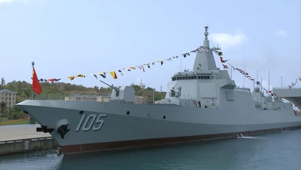 2021年4月23日,第三艘055型驱逐舰"大连舰"(舷号105)在海南三亚入列。