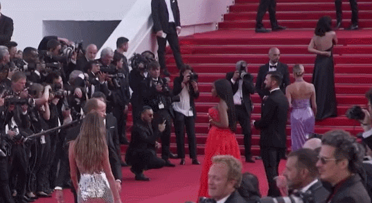 一旁原本在红毯上搔首弄姿的女星,被这么猝不及防的场面吓成了表情包,众人也是连连后退。