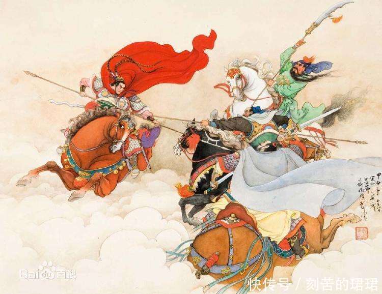第二阶段关羽加入吕张二人战局,诗里描述:"马蹄到处鬼神嚎,目前一怒应流血。"可以看到这一阶段三人已经打疯了从而引刘备加入战局。