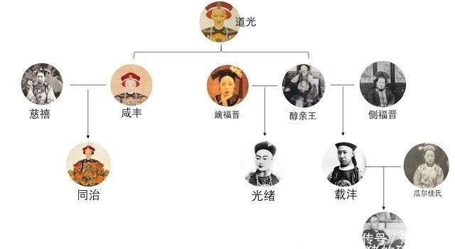 至于他们的关系,咱们可以这样说,乾隆生下了嘉庆皇帝,嘉庆又生了道光皇帝,道光生了咸丰帝和醇亲王,醇亲王是溥仪的亲爷爷,溥仪的亲爹是載沣,关系网见下图。